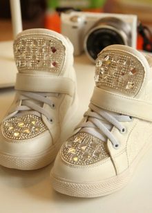- Dark tones are not so popular among children. Though they are very practical, they do not please the children's eye. Most often, black sneakers are becoming a favorite choice of girls in their teens, especially if the model has decor in the form of rhinestones or precious stones.