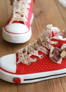 - Red sneakers, like gray and blue, belong to the classic range of color palettes, so many opt for them most often. Models of these shades best fit into many images.