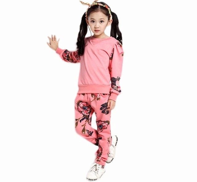 - A tracksuit consisting of a pink sweatshirt with a single-tone front and printed sleeves and pants with the same floral print.It will look great and very stylish with white leather sneakers with a rounded toe.