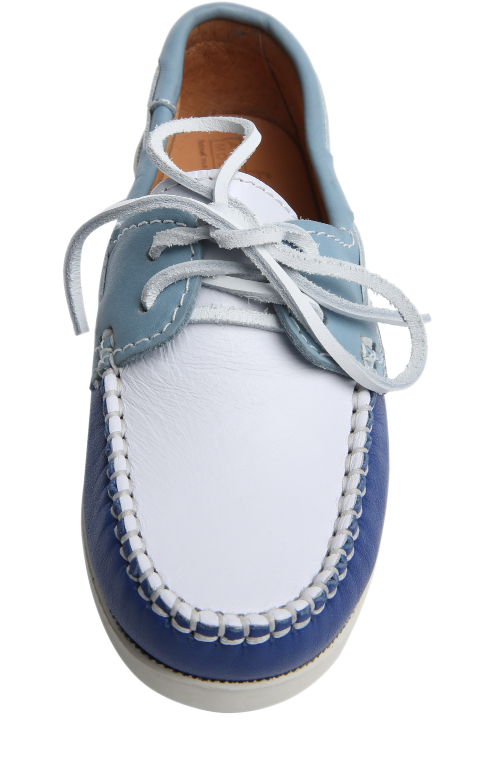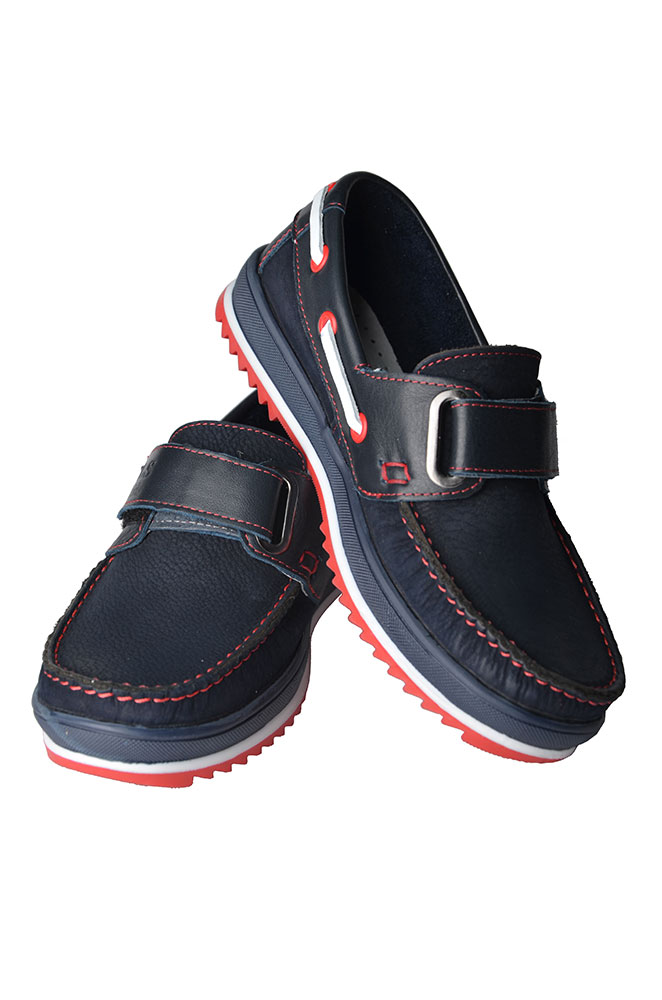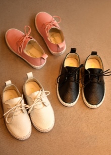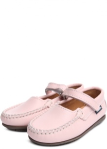 This type of children's shoes is a cross between classic moccasins and shoes. At the heart of such a model is one species, to which elements of the second are added. Such shoes are better suited for children, as it has a tight fixing element. Outwardly, it resembles shoes or shoes, but the nose has a rough outer seam around the perimeter.