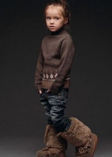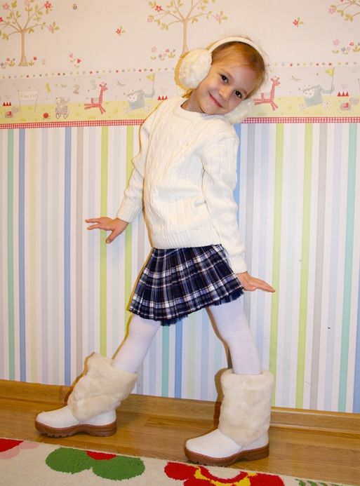 If you and your baby live in the northern regions, then you need to look at the classic version of high fur boots. Such shoes consist entirely of fur: socks and heels are not protected from moisture. Classic boots will warm the child even in the most severe frosts.