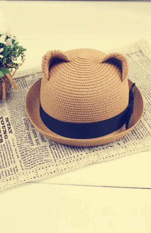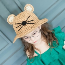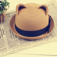 An interesting option for a children's straw hat will be the one with cat ears. The cap can be purchased in several color palettes: yellow, blue, orange, royal blue, pink and red. The hat will look original with any accessory.