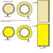 - For the manufacture of fields, cut a circle of the required size. Two centimeters more need to cut a knitted circle. The strip must be sewn into a ring and ironed on one side of the cut.