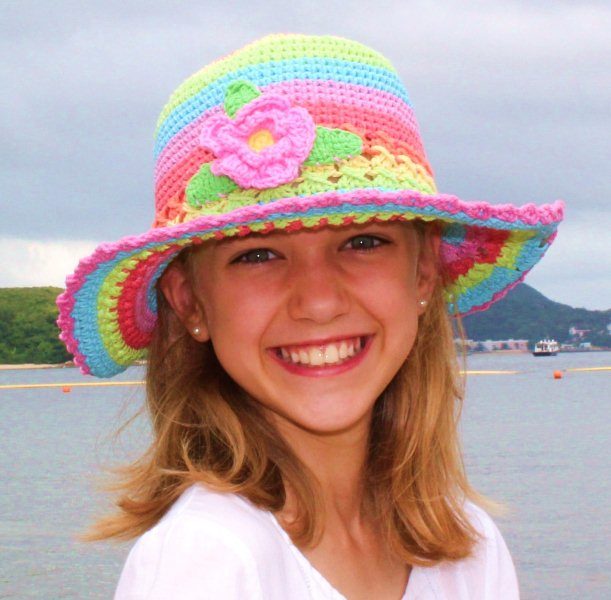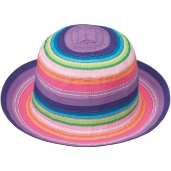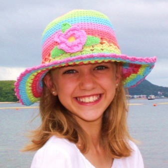 An elegant option would be a hat with horizontal stripes painted in all colors of the rainbow. This hat will protect from sunlight. The material of the cap is very soft and airy, which will surely please every little capricious person.