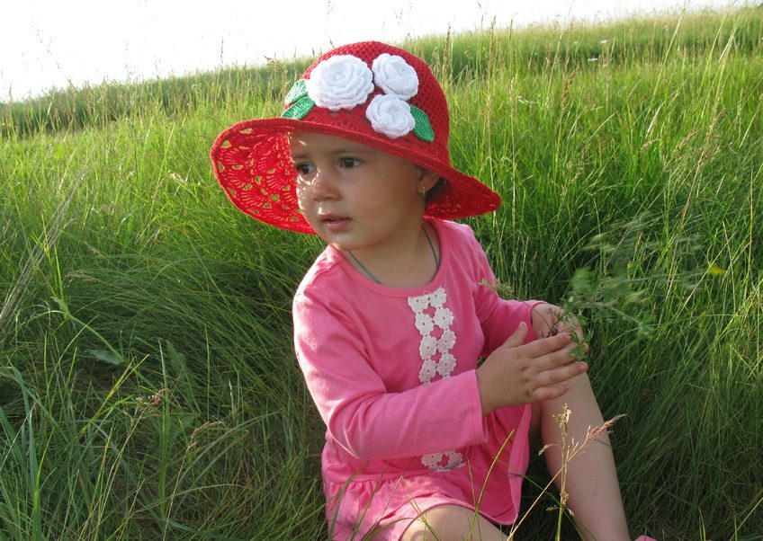 Compatibility of a hat for children and a light dress can be called the most safe option. Also a fashionable trend is the combination of a hat with a sundress, shorts, trousers with a T-shirt.