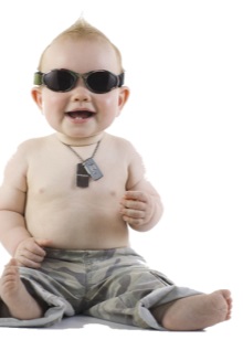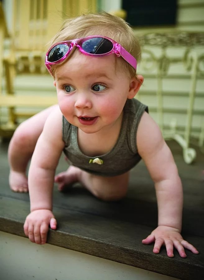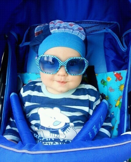 The sun affects all living things from birth. As if parents do not cover the stroller with special devices, the sun's rays will still fall into the eyes of the baby. But few people buy sun glasses for a very young child.