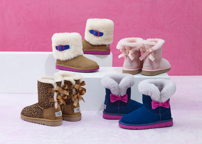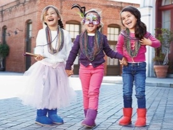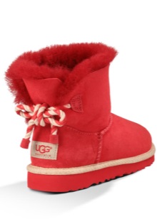 Uggs for children can be in the form of long boots or half boots. They can be laced, buttons or single cut. Children's models are often decorated with snowflakes, deer and so on. Their colors are bright and attractive. Often uggs for children can be decorated with natural fur, bows, rhinestones, cartoon characters.
