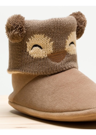 A very unusual and common model is knitted uggy slippers. When they first appeared, they did not differ in originality of patterns. Now manufacturers are trying to surprise even the most sophisticated customers. They offer interesting weaves and plaits. Also, homemade models can be equipped with fur, bows or butterflies.