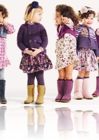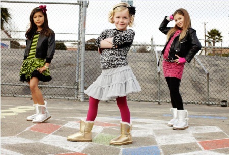 If we talk about outerwear, then uggs are well suited to down jackets and short sheepskin coats. Moreover, this applies to both girls and boys. Of course, little fashionistas have more choices. For example, uggs and flying ponchos or short fur coats look very stylish.