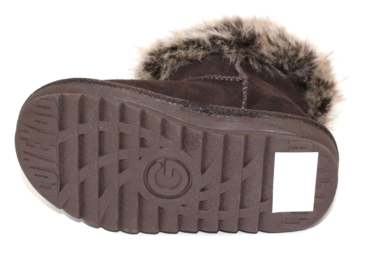 The fur is inside the product, which provides heat even in the most severe frosts. The surface of the shoe is smooth. Sole - rubber, embossed. This prevents possible falls and injuries.