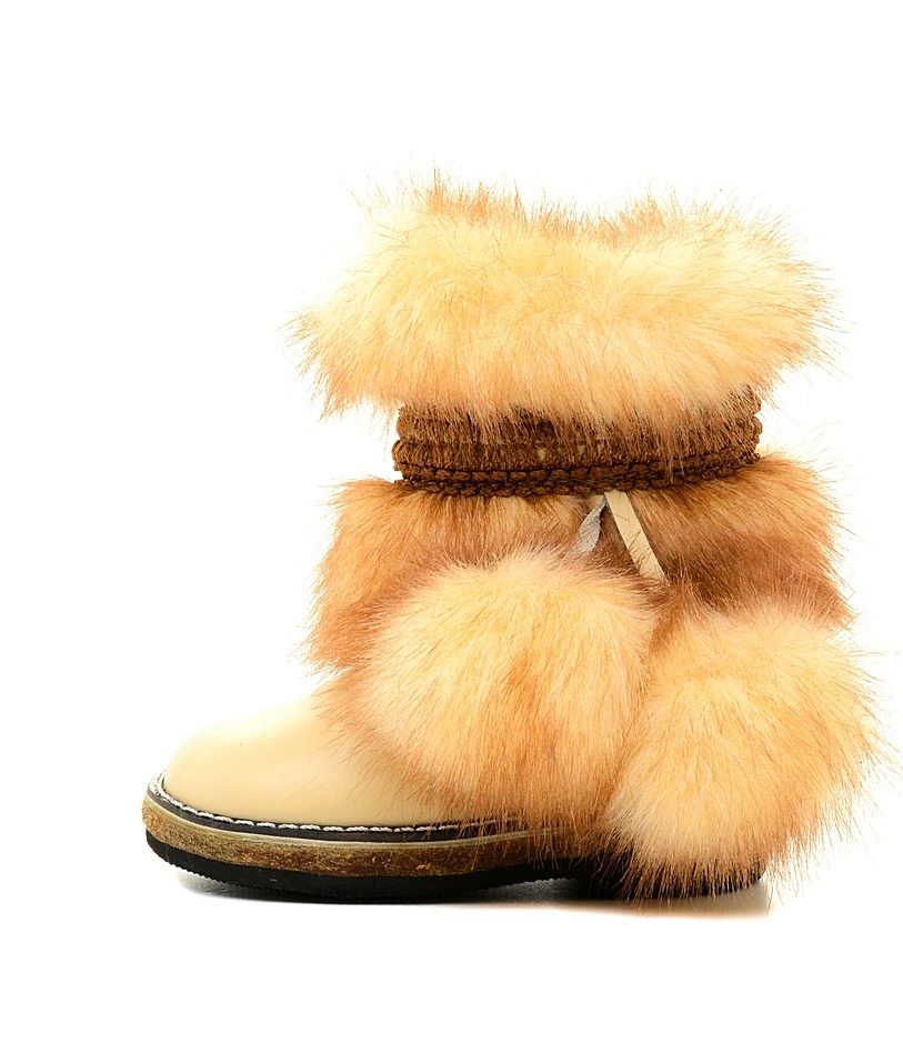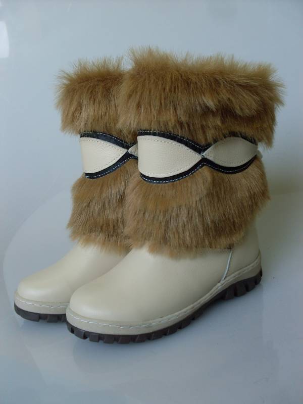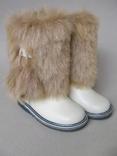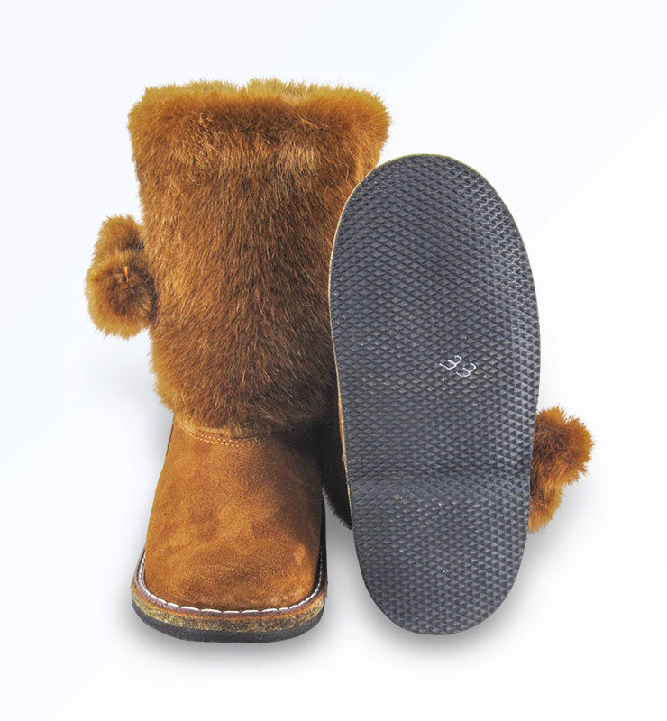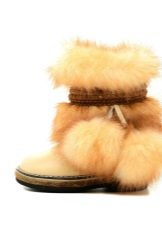 Often children's high fur boots are sewn by hand, to order. The seamstress carefully measures the baby's foot and makes an exclusive item. It should be noted that such shoes will never be unstuck, because it is stitched with quality.