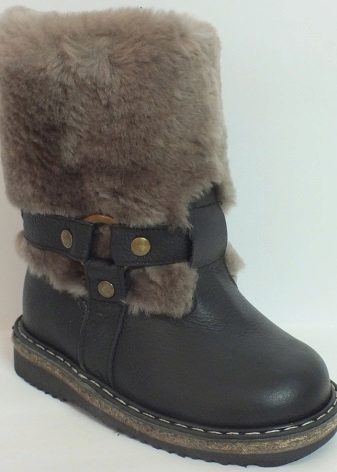 Russian company "Moregor" makes children's high fur boots with an edge from a muton and a nutria. Due to modern technology, shoes have the highest thermal insulation performance. The sole remains flexible even at the lowest temperatures. Products are distinguished by a fairly reasonable price and original design. The company offers a variety of color options for boots - it is easy to choose shoes for any clothes.