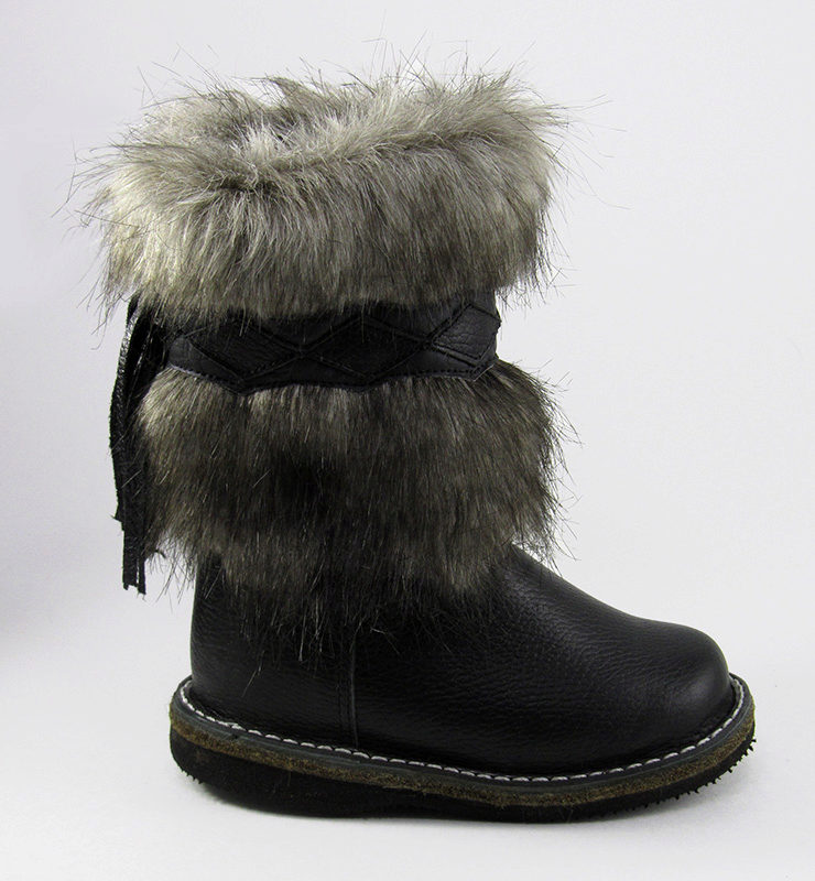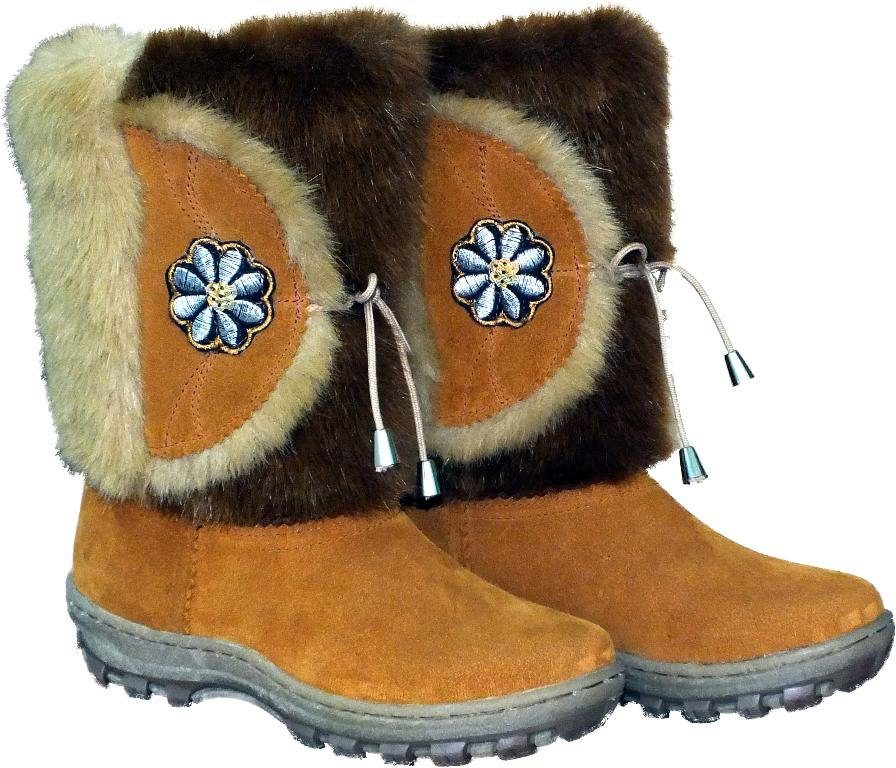 Traditional northern boots are sewn from a specially crafted deerskin. But this raw material is quite expensive, and also capricious in processing. Therefore, modern children's boots are often made from cheaper horsehide - this material also retains heat well. Smooth sheepskin, as well as magnificent arctic fox, fox and raccoon are used as fur trim. There are also models with synthetic fur.