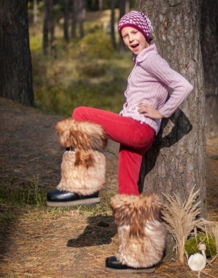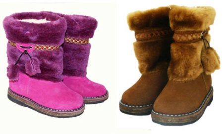 In general, high fur boots are the traditional footwear of the northern nations, a kind of analog of the original Russian boots. As for children's models, they are sewn exclusively from natural raw materials: the tops are usually made of thick sheepskin, also fur of deer, rabbit, fox species - corsac. And inside boots, they are usually warmed with a layer of felt, a warm insole is obligatory. All these materials provide a normal heat exchange: children's feet in high fur boots will not freeze and will not sweat.