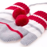- knitted mittens with an ornament - with deer, with trees, with patterns (polka dots, stripes, geometric).