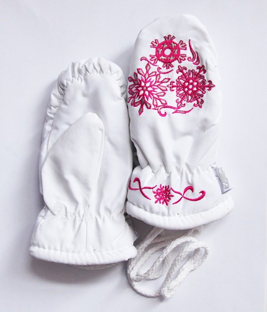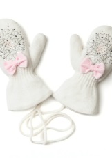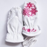 White mittens look festive and elegant. But for active players, this color is impractical, so mothers rarely choose this option, dwelling on dark or bright colors.