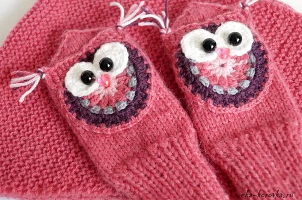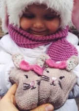 For girls of any age, clothing should be beautiful in order to cultivate taste from an early age. Here and mittens for them make decorated with different embroidery, ornaments, appliqués, openwork from the back side. Girls and sets love: a hat, a scarf and mittens - all in the same color and style.