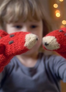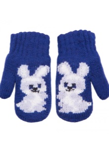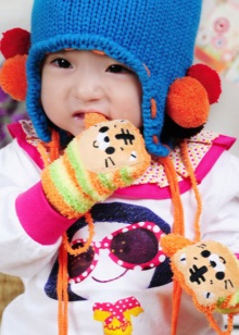 For babies from a year to three, mittens are presented in wool options.. After all, children at this age are still not so mobile and spend little time in direct contact with the snow. For them, there are interesting options for decoration and decoration - mittens, animals, with muzzles, with soft toys on the back of the palm.