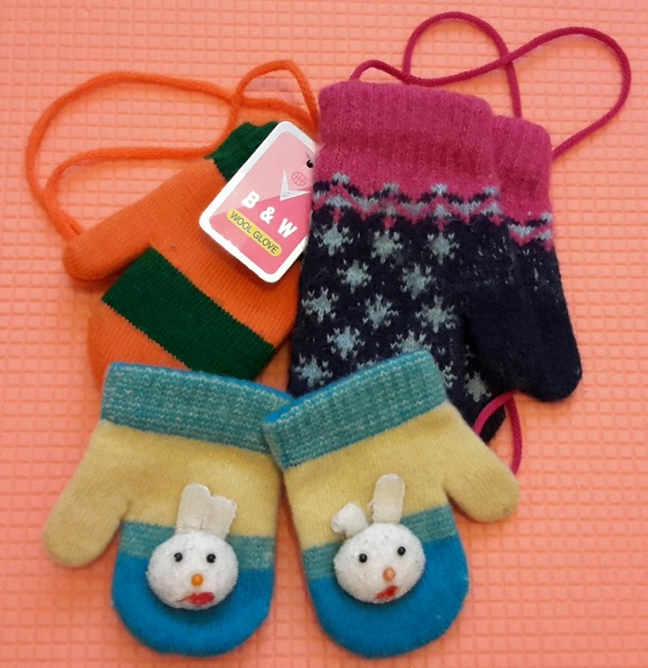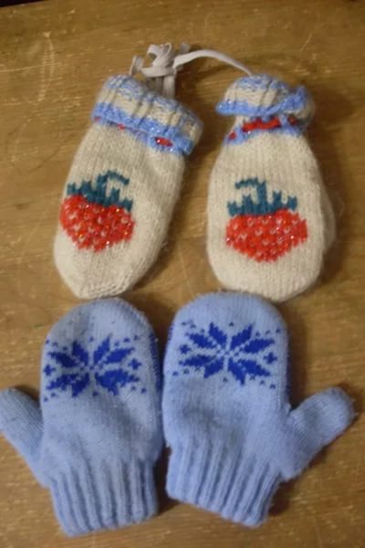 The colors in the children's mittens are combined, mixed, thus making each pair original.