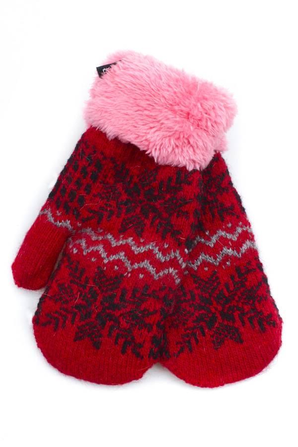 - Wool and angora. The warmest and downy materials for mittens are still from our grandmothers. Now wool mittens are made from sheep, dog, camel wool, from merino. This material can be, as a basis for knitted mittens with patterns, braids, jacquard, and a filler for synthetic mittens. To keep the wool from injecting and sitting by the hand, manufacturers add to it a gentle acrylic and stretching elastane.