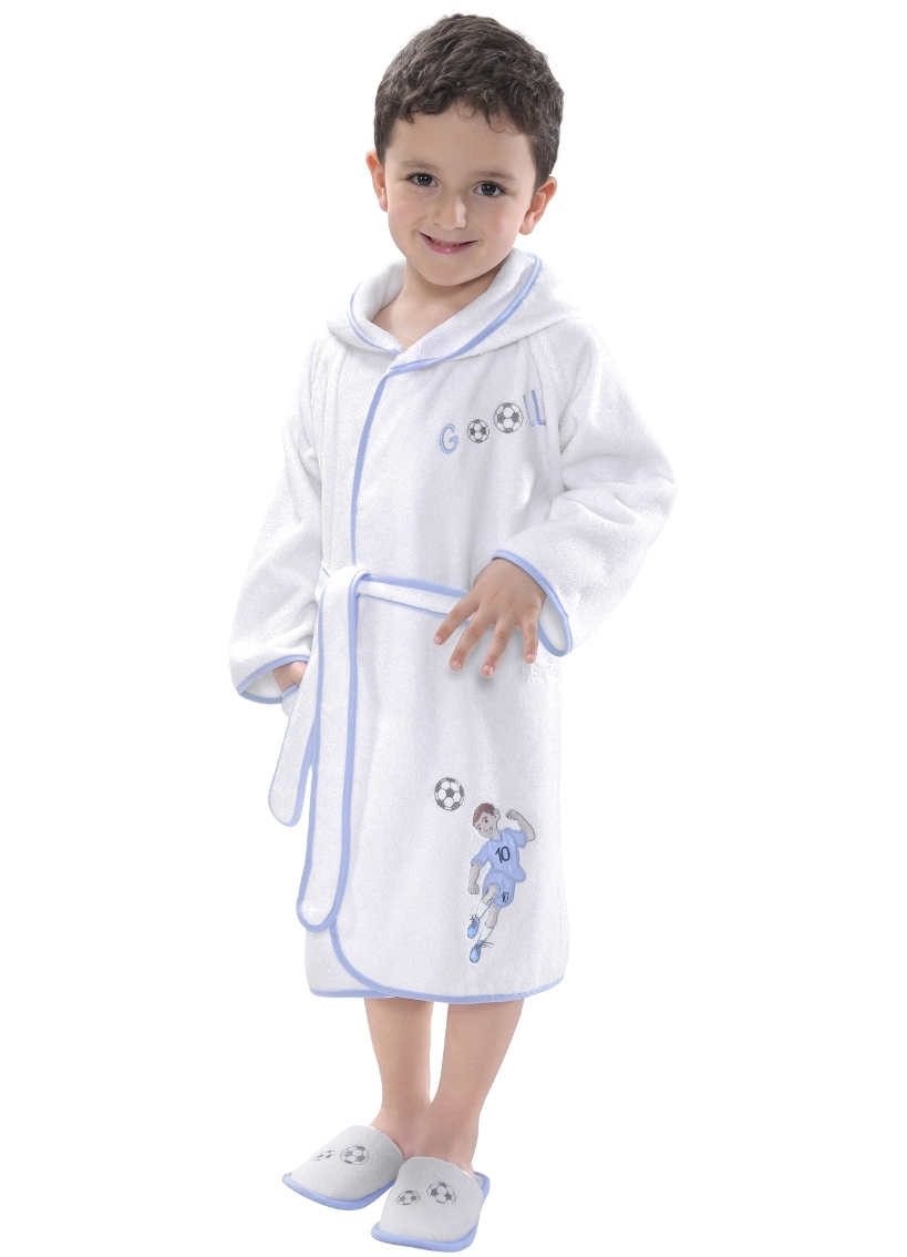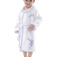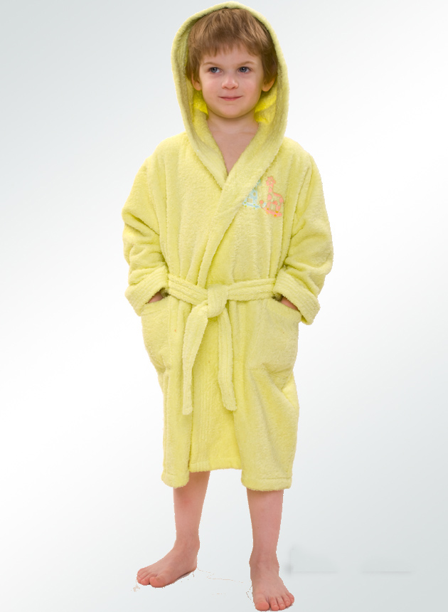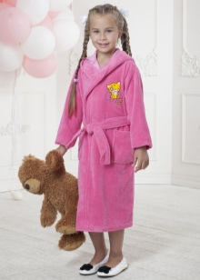 It is best to choose a bathrobe with your child. He will choose the option that he will like, you will only need to inspect the seams and the composition.