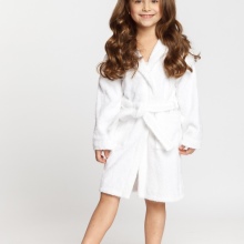 Simple option for kids. This robe is easy to fasten yourself. When choosing, look for models with a hidden lock, because cold metal in contact with the skin of a child can cause discomfort and even irritation of the skin.