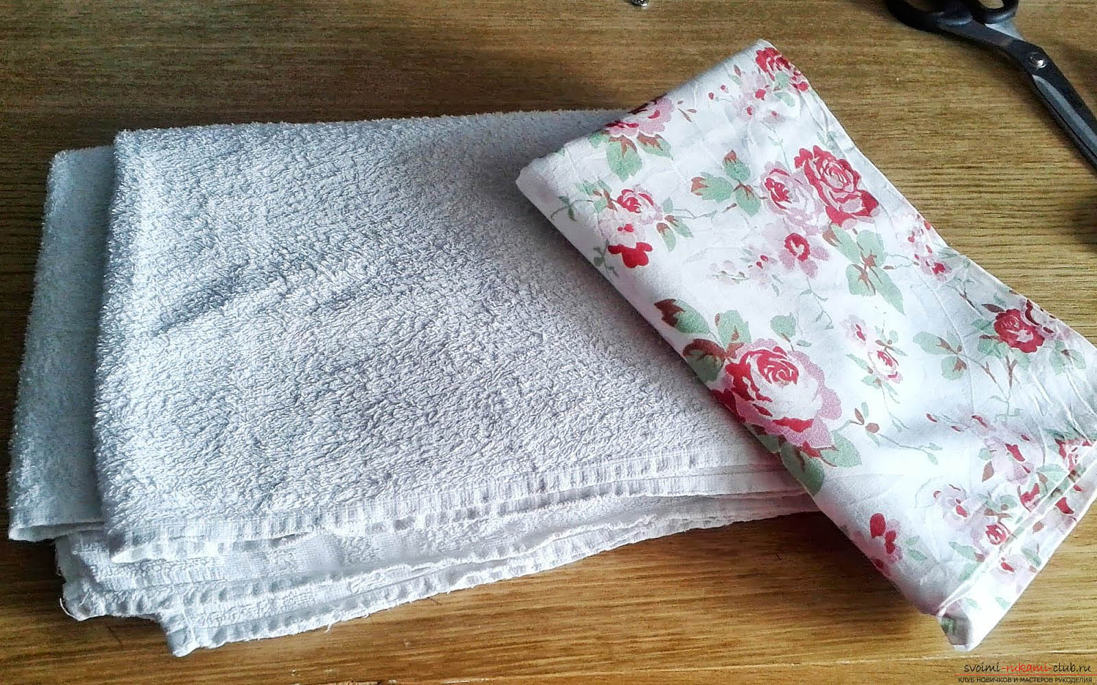 The child can be pleased with a dressing gown and own production. For this, mothers take a large bath towel, bent in half, and impose on it also a child’s bent blouse, edge to edge. Cut out a towel along the contour of the jacket, retreat a few centimeters for the seam and for the free cut of the robe. It remains to go through the seams on a sewing machine and decorate a bathrobe. You can add and hood, focusing on the size of the child's head.