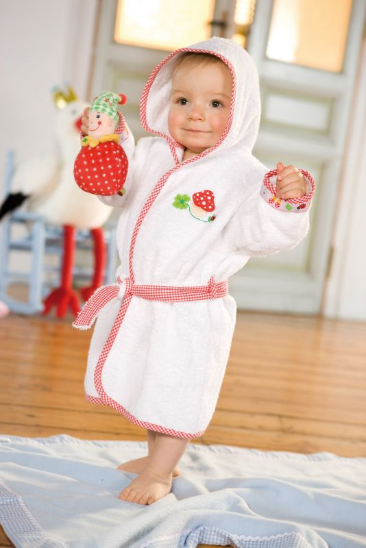 In the correct dressing gown the child should feel as comfortable as if he were not wearing any clothes. It should be warm and soft to protect the hot skin of the child from cooling.