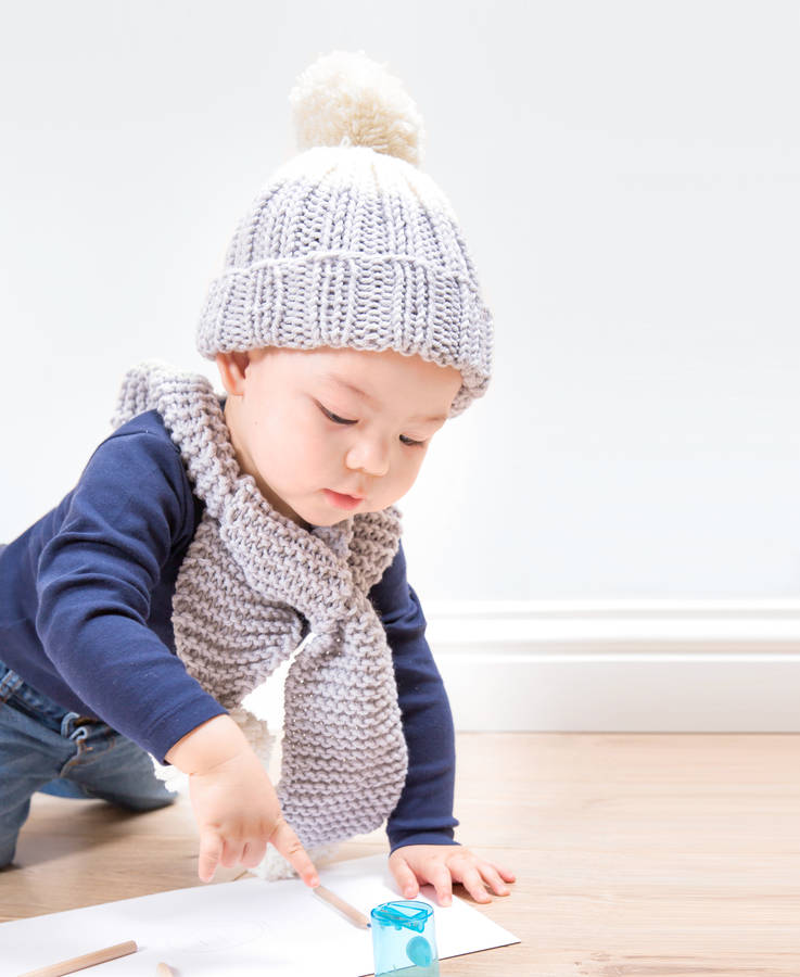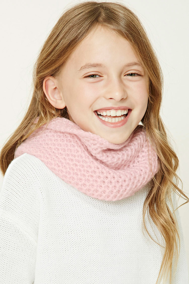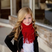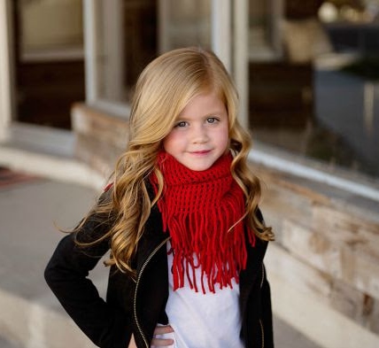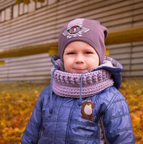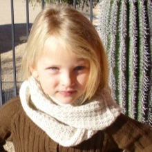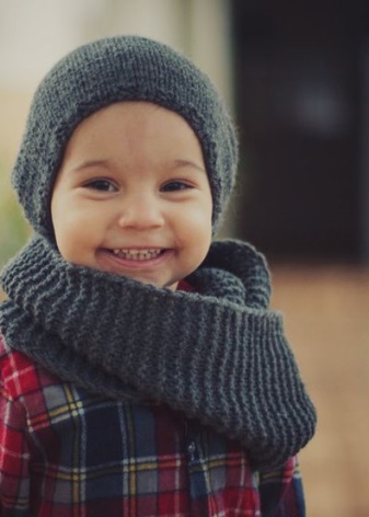 - The length of the scarf is extremely important. An unnecessarily long model will not allow a child to frolic with his peers, as he will constantly cling to various objects and be confused under his feet. The best option is 120 centimeters. This is enough to double wrap children knitted scarf around the neck.