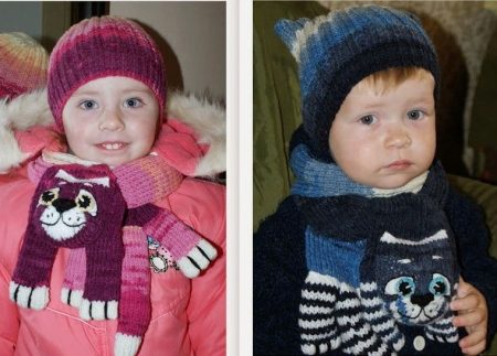 The most current colors of children's sets of hats and scarves for each season are blue, green, red, white, terracotta and black. However, the color palette is not the most important thing. The basis of the appearance of the models are patterns.