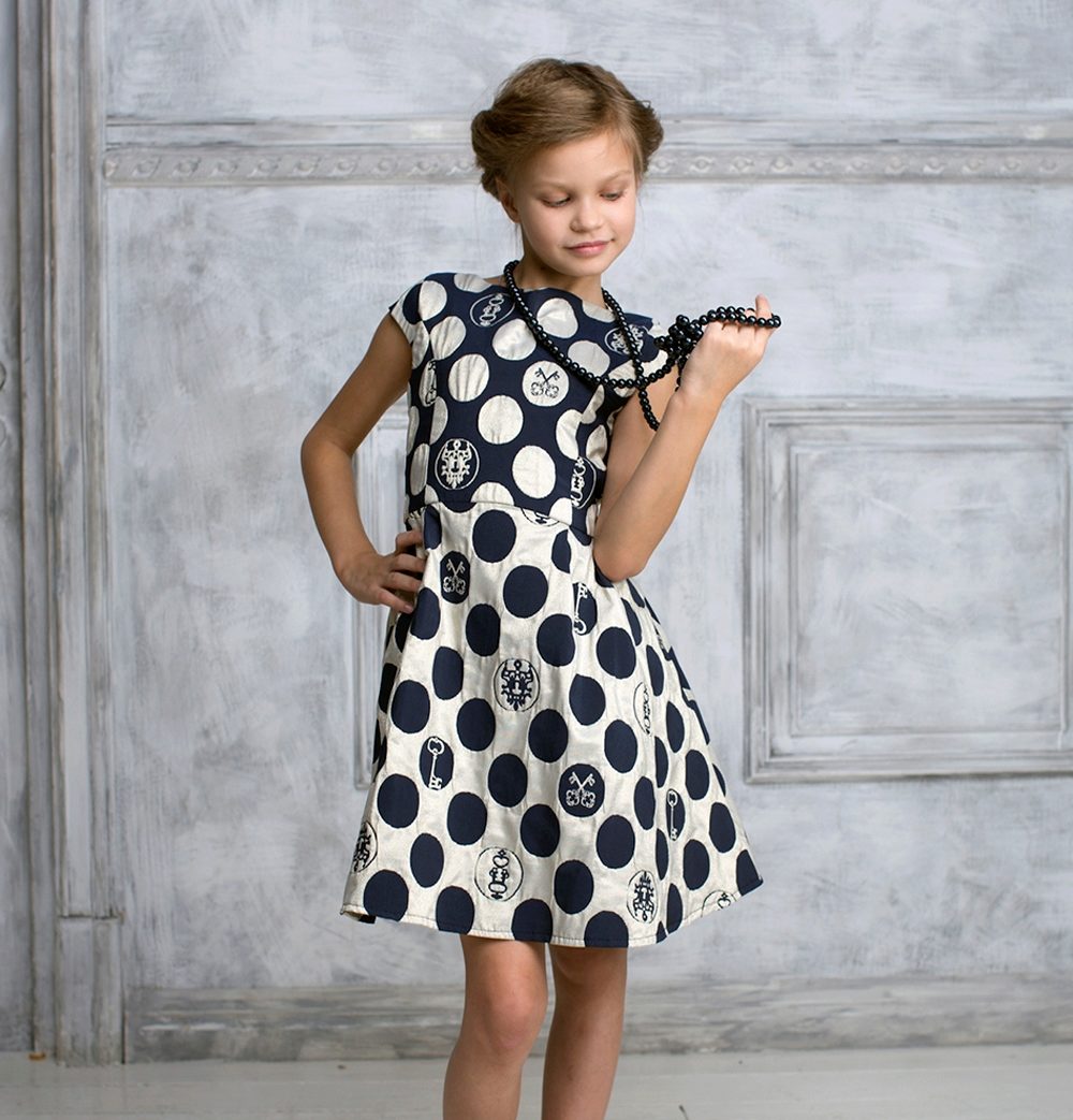 Dresses in retro style are always popular. Choose a fitted dress with a full skirt just below the knees. On children, a floral print or polka dot (polka dot) looks very cute.