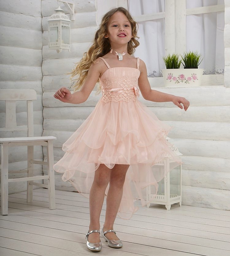 Today, the range of children's cocktail dresses scatter eyes. Often they have an unusual cut or decorated with abundant decor, because each designer seeks to surpass the other. It should be remembered that you buy an outfit for a child who likes to run, jump and have fun, so make a bet on comfort. Your daughter will definitely appreciate this outfit.