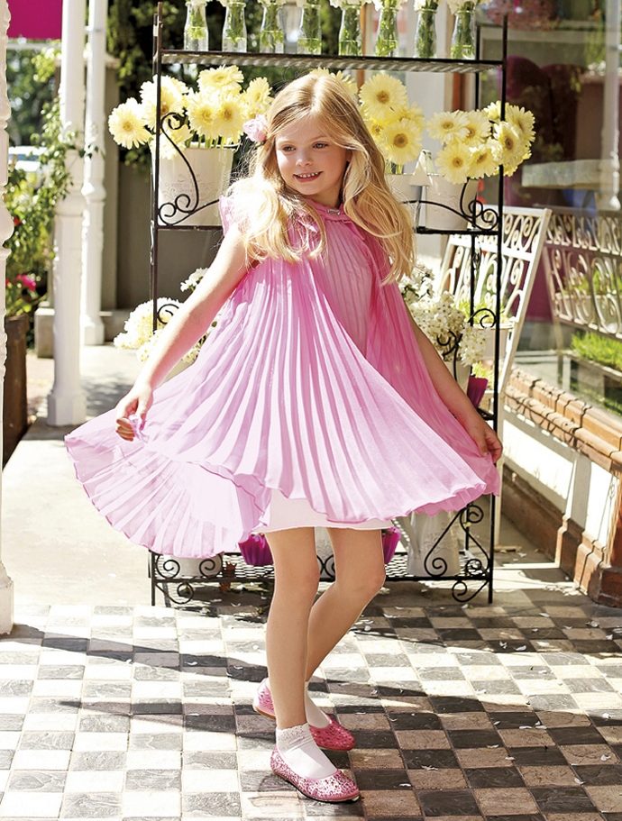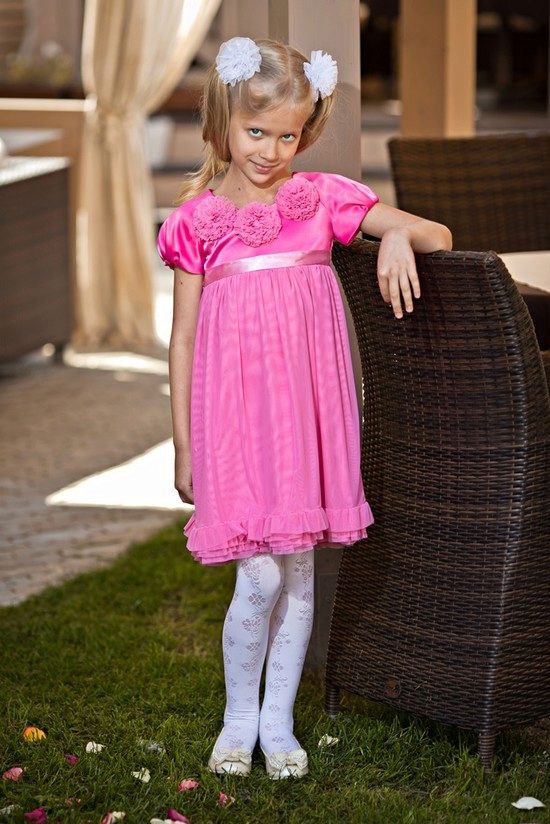 The decor of this model is minimal, but very often it has lace trim and drapery elements. As a decoration can be used a brooch on the chest or a graceful flower on the waist. This is one of the most successful styles of children's fashion.