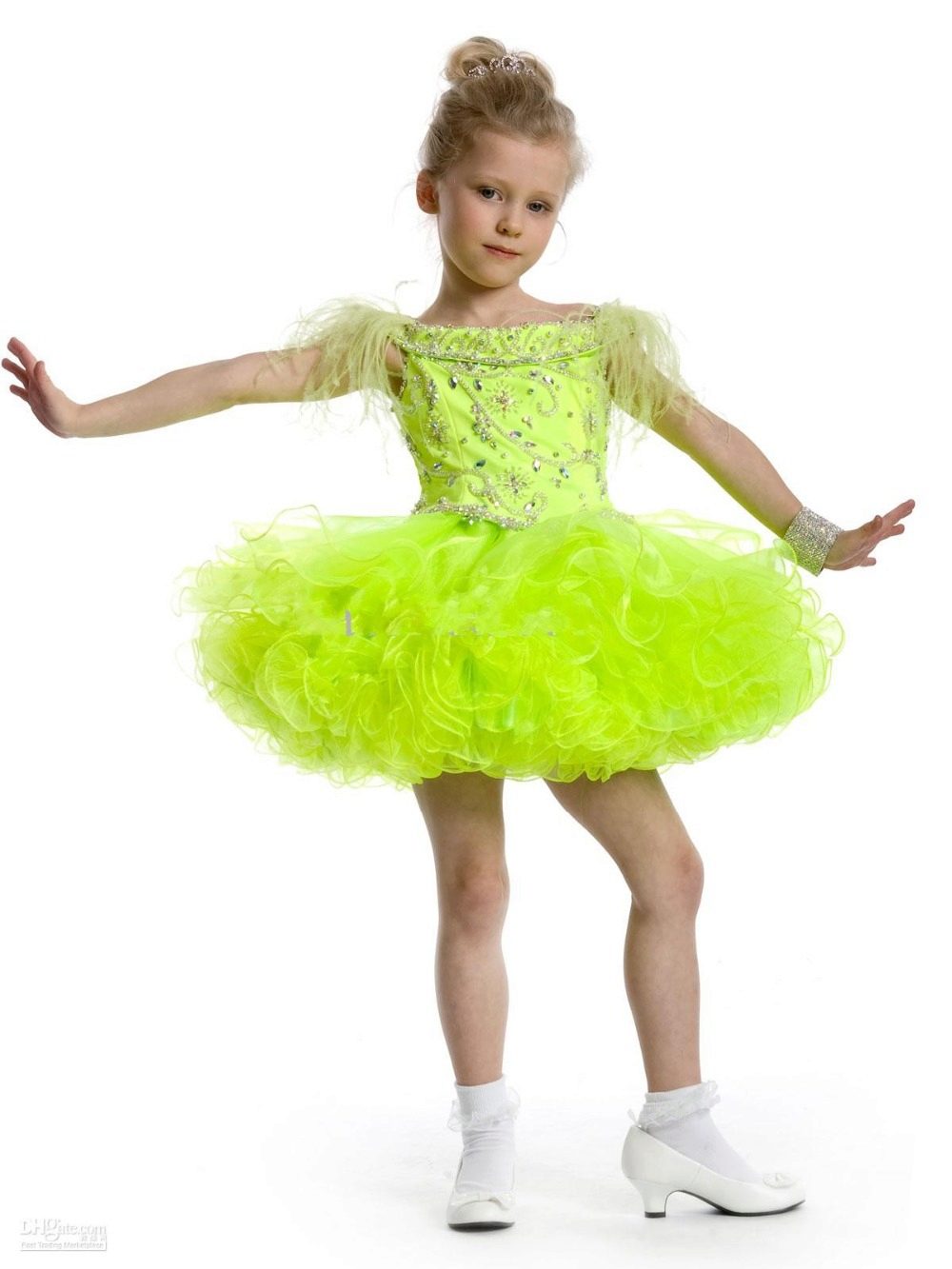It is better if the mermaid baby dress ends in the middle of the calf or around the knee. The fitting part should end immediately under the buttocks, and then the hem should expand to the bottom.It may consist of lush beautiful flounces that will make the girl look like a princess.