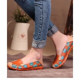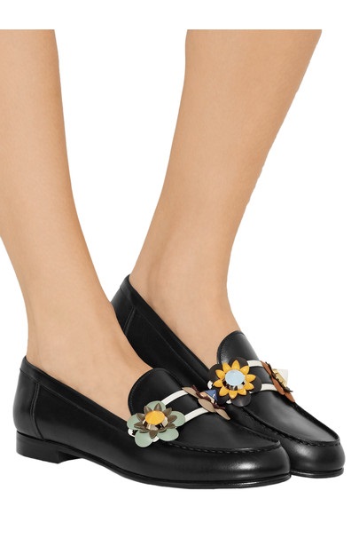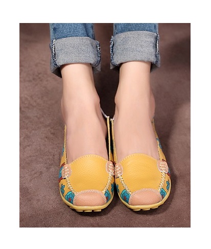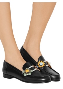 With such shoes you can wear a fluffy dress in color or a wide bright sundress. Harmoniously in a similar outfit will look lacquered moccasins, decorated with floral appliques.