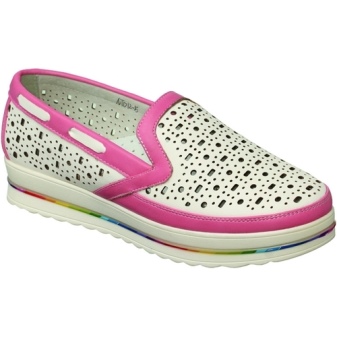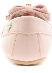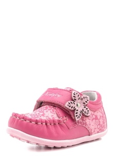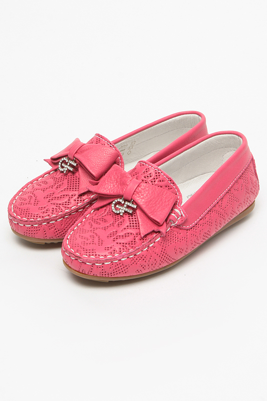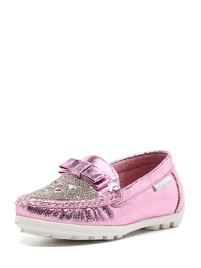 Kakadu brand offers little fashionable women very stylish and festive moccasins. Brilliant pink surfaces, a pile of toe stones and small bows look very impressive!