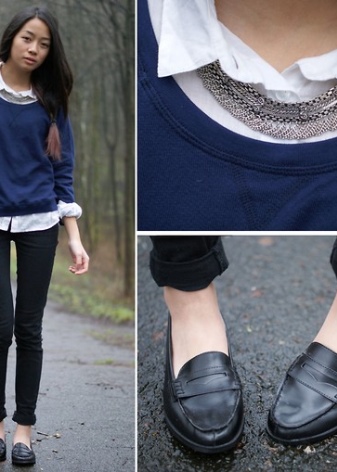 Universal moccasins will harmoniously look not only with casual clothing, but also a strict school uniform. For any dress code, you can easily find the right model. For classes, it is better to choose plain models of matte and patent leather without unnecessary decorative details and shiny stones.