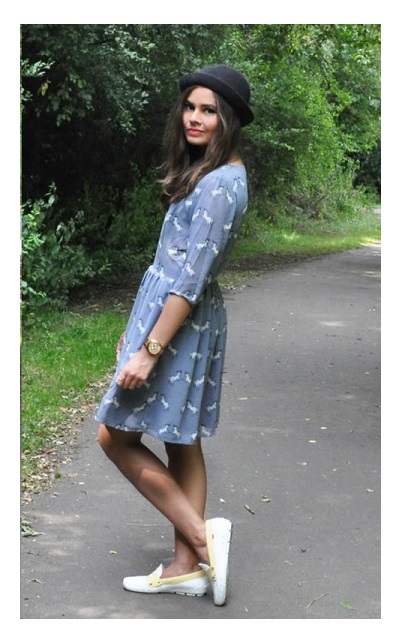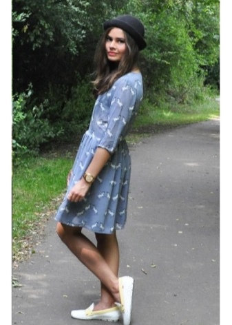 Moccasins will harmoniously look with straight and fitted dresses of medium length. Solemn floor models are best worn with loafers on a heel or platform. You can complement the outfit with the help of a coquettish bolero and clutch.