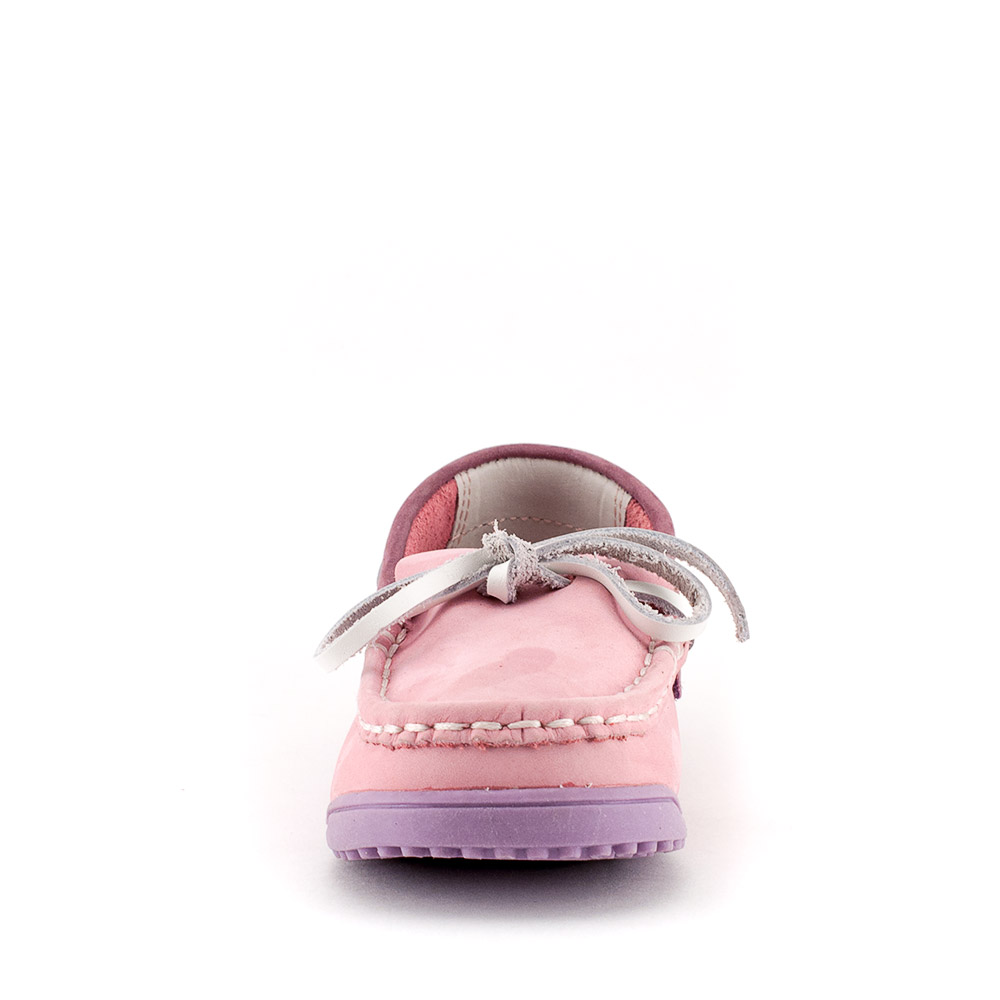 Stylish baby moccasins for girls 3-5 years from the company "Zebra" are made of genuine leather. The model range is represented by products of delicate colors. Very nice look model of natural suede pink. The rise of the foot can be decorated with a classic moccasin bundle of lace or a bow with a metallic insert.