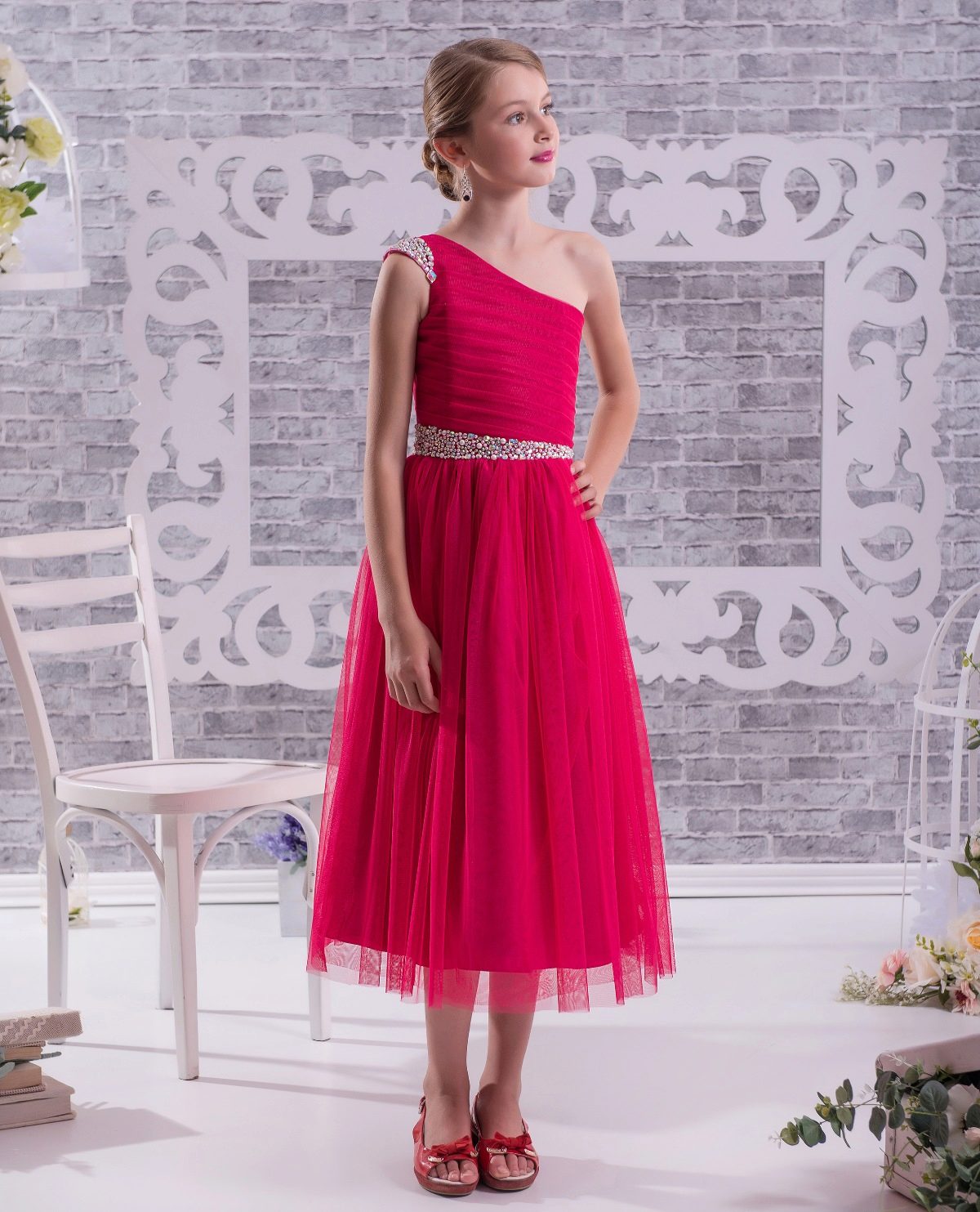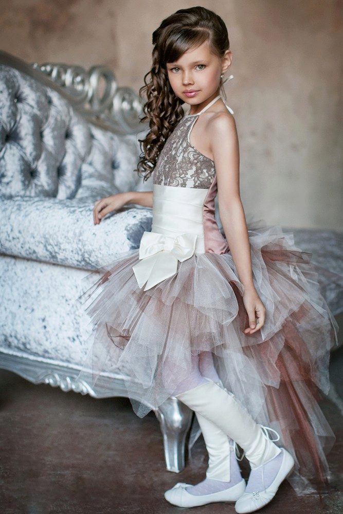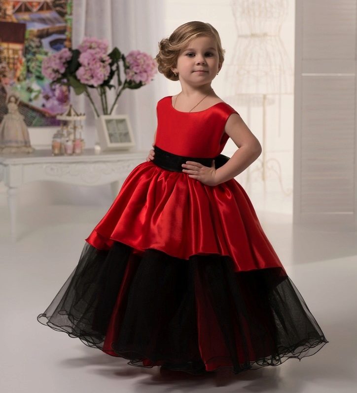 An evening dress with frills or a cascade skirt looks great on a child. And for older girls, it is better to choose a trapezoid dress with shoulder straps, or with an overestimated waistline.