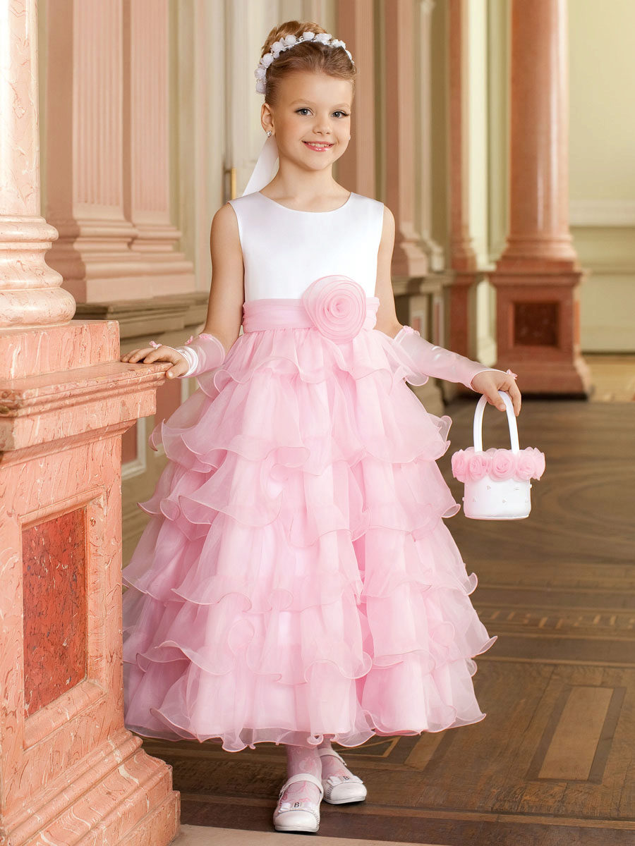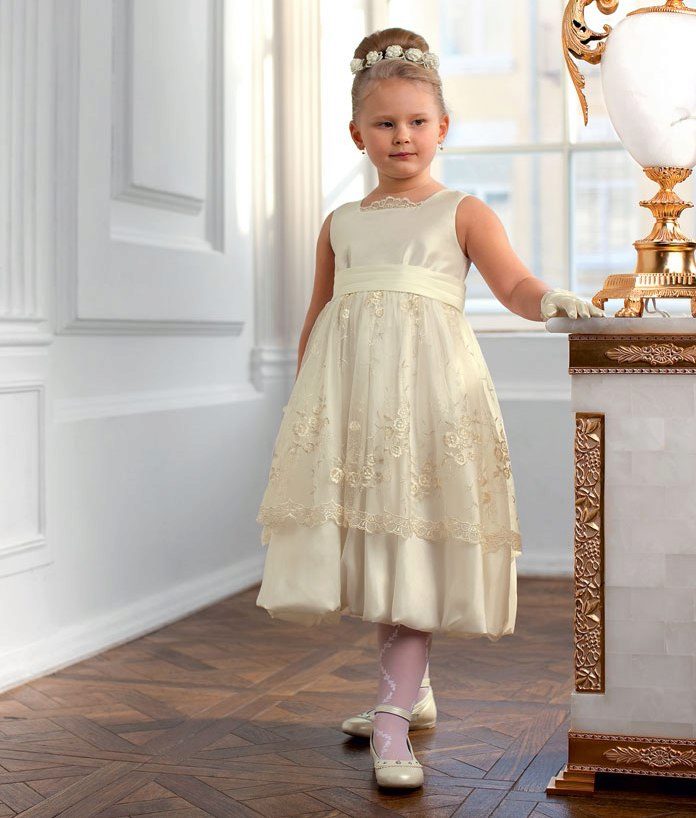 The maximum length of the dress should not be lower than the bones, if the girl is still small, it is better to choose a short model. Let it be lush and brilliant, but reach only the knee. This will allow the baby to run and frolic without fear of stepping on the hem of the dress.