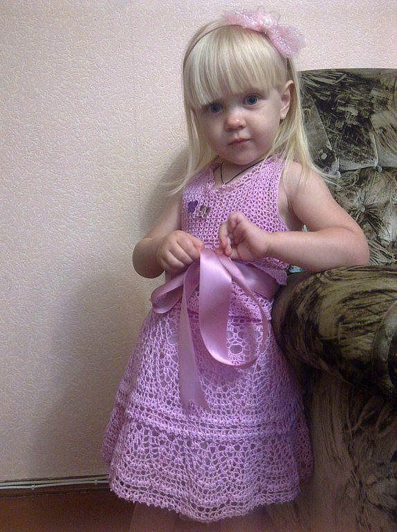 Babies are often bought pink dresses, but this color is not suitable for girls who are prone to corpulence, everyone else can not limit themselves, choosing shades from bright to pale pink. If your daughter has a bright appearance, she will be fine in crimson or lilac.