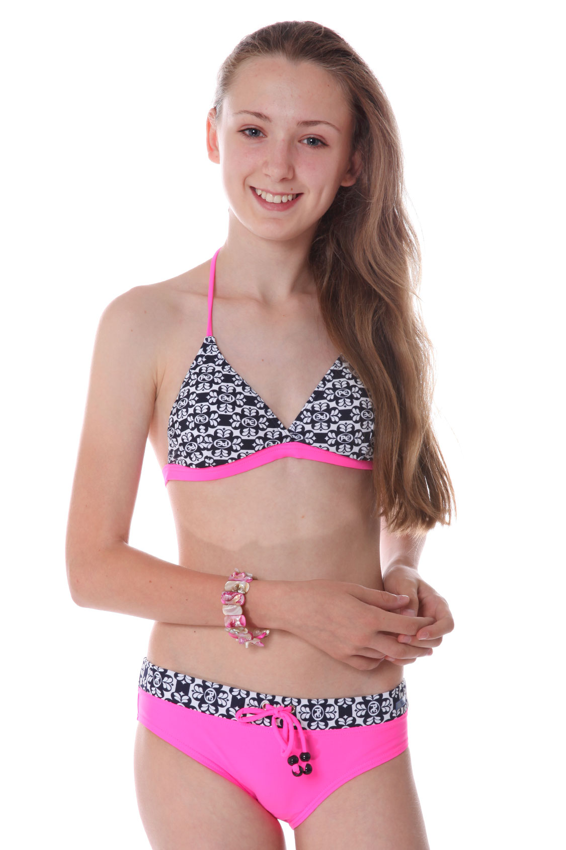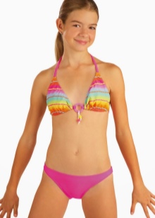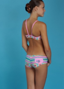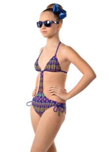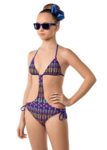 Model bikini, consisting of panties and bodice is always at the peak of popularity. The main thing - to choose the right shape of the bodice and panties. The unformed figure of a teenager can be given a bit of femininity with the help of a bodice with push-up and panties with a small flounce. The main advantages of a bikini are that they dry out much faster than closed ones and provide a more even tan.