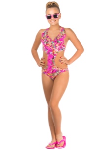 One of the variations of the one-piece swimwear is monokini. The model got its name due to the combination of the bodice and panties and its popularity is based on the spectacular contrast of alternation of open and closed parts of the body. Monokini design allows you to hide the most problematic areas of the figure. Very popular monokini with a closed belly. The bodice and panties are connected in such a way that the abdomen area tactfully closes, and the silhouette looks more slender and adult.