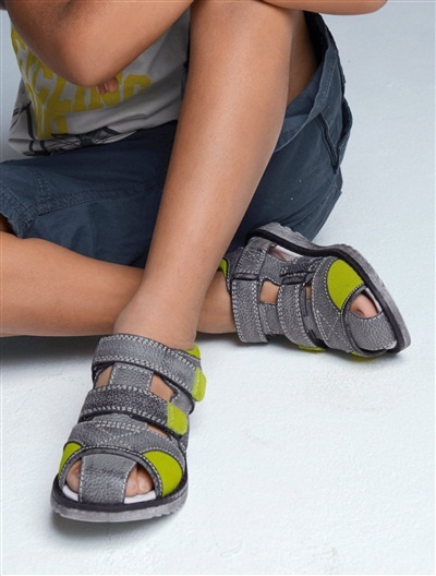 Comfortable and lightweight sandals made of genuine leather and nubuck for boys are made in attractive colors with trendy decorative trim and contrasting stitching.