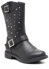 Sometimes the bootleg is decorated with a floral print, favorite cartoon characters or a pattern of rhinestones, metal accessories. Look beautiful on the foot and options with quilted tops and inserts of patent leather. These boots can be decorated with buckles that mimic a buckle around the foot or textile bows.