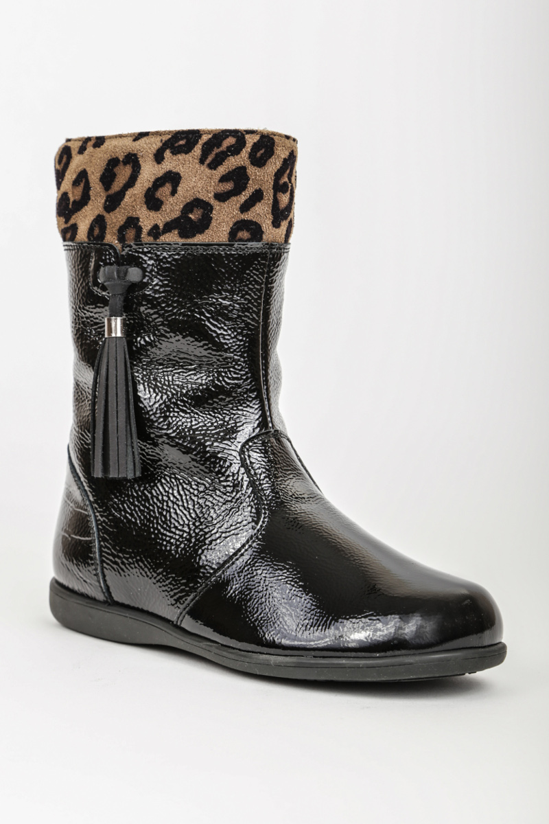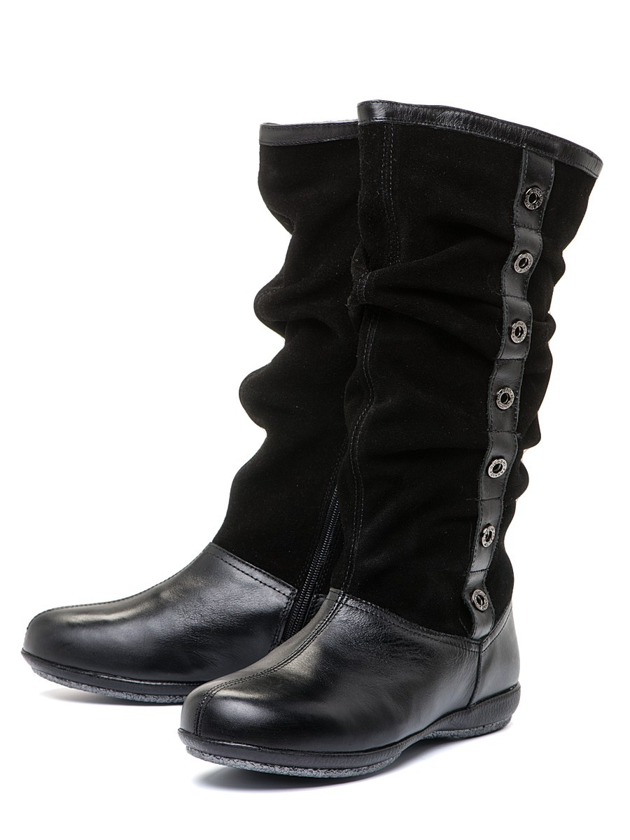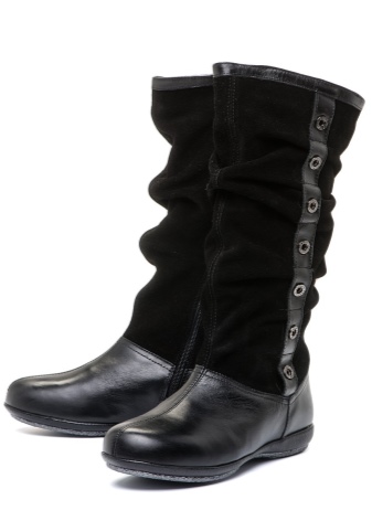 - Manufacturers of footwear for children offer a combination of leather and suede boots. This option is in demand, it is more practical and easier to maintain. Usually the bottom of the boot is made of leather, and the tops are made of suede.