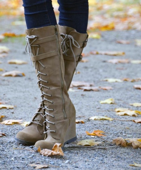 Fashion designers offer active girls boots on the platform and wedge. For a warm autumn, you can pick up a suede model of marsh color on a flat sole. Contrast lacquer inserts of leather in the toe and heel add life. The optimum thickness of the sole with the tractor's relief will make the product sustainable. Models on the platform are well suited for teenagers who do not like heels.