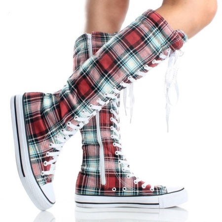 Shorter products often resemble low shoes. The presence of lacing and platform brings the model closer to casual style. Stylish new items that are in demand among young fashionistas, perfectly combined with school clothes and harmoniously complement the sports and urban bow.