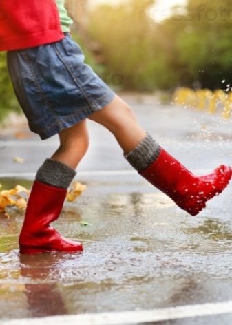 Rubber boots are an indispensable option for combination with raincoats, windbreakers, parks and jackets. It is great if the boots are made in the same color combination with a children's umbrella or raincoat.